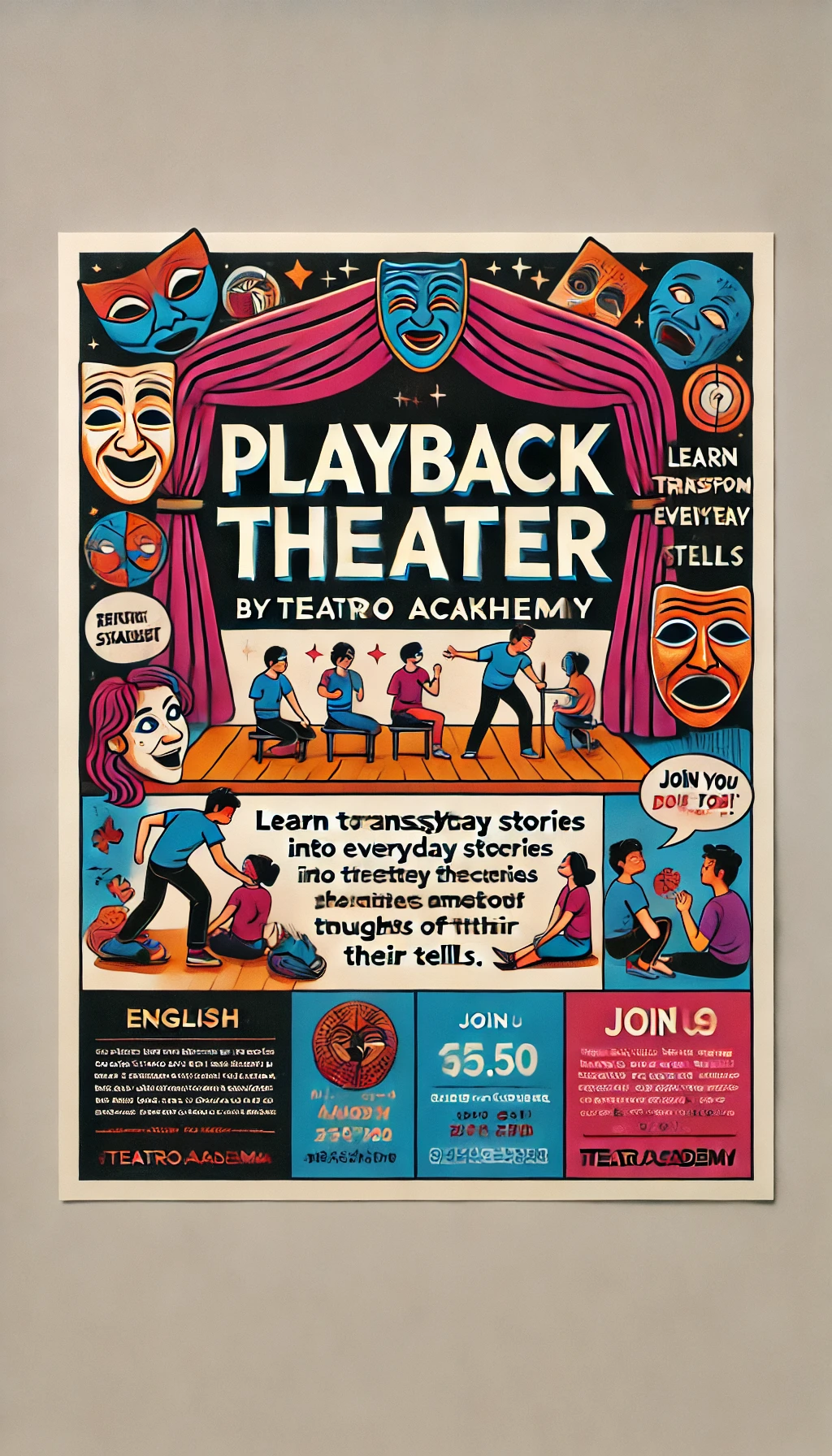 أكاديمية تياترو تقدم ورشة مسرح الارتجال بليباك لطلاب المدارس والمجموعات! انضموا إلينا في تجربة فريدة تتيح للمشاركين استكشاف مشاعرهم وأفكارهم والتعبير عنها عبر مسرح البليباك التفاعلي، وهو نوع من المسرح الارتجالي حيث يقوم المشاركون بإعادة تمثيل قصص واقعية تُروى لهم مباشرة من الجمهور.